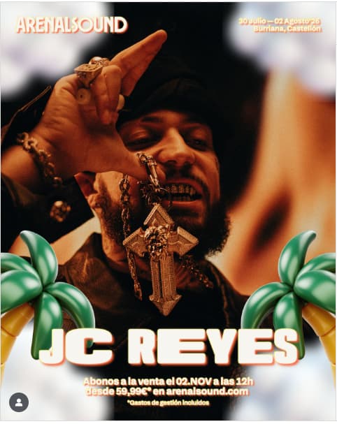 ? ¡Confirmado! JC Reyes se une al cartel del Arenal Sound 2026 en Burriana (30 de julio – 2 de agosto) ?
