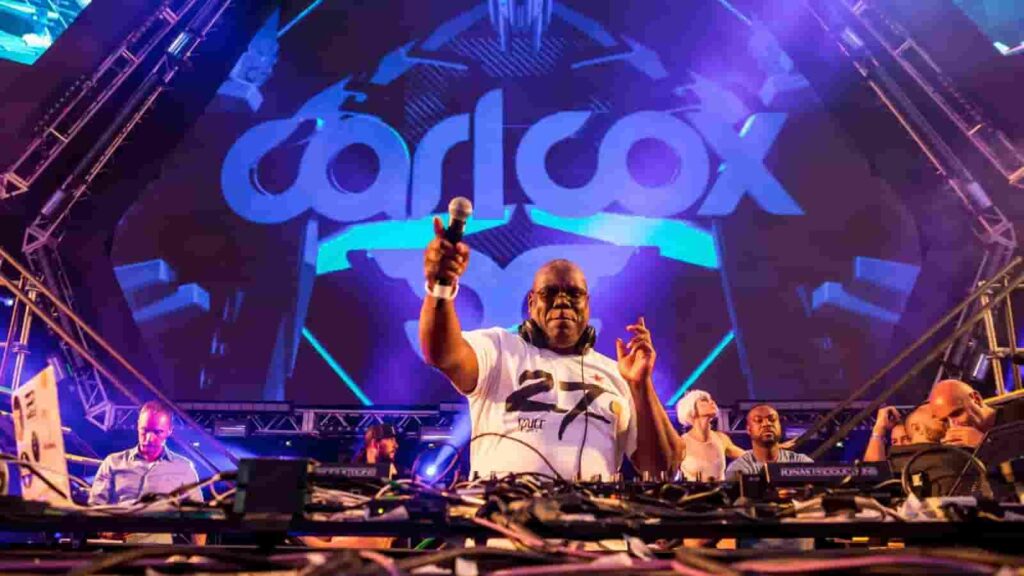 A lo largo de más de 40 años de carrera, Carl Cox ha actuado en los festivales más importantes del mundo, como Ultra Miami, Tomorrowland, Medusa Festival o Creamfields, además de ser residente en clubs icónicos como Space Ibiza, donde consolidó su reputación internacional. Su estilo combina techno, house y acid, caracterizado por sets largos, enérgicos y técnicamente impecables que mezclan clásicos con producciones actuales.