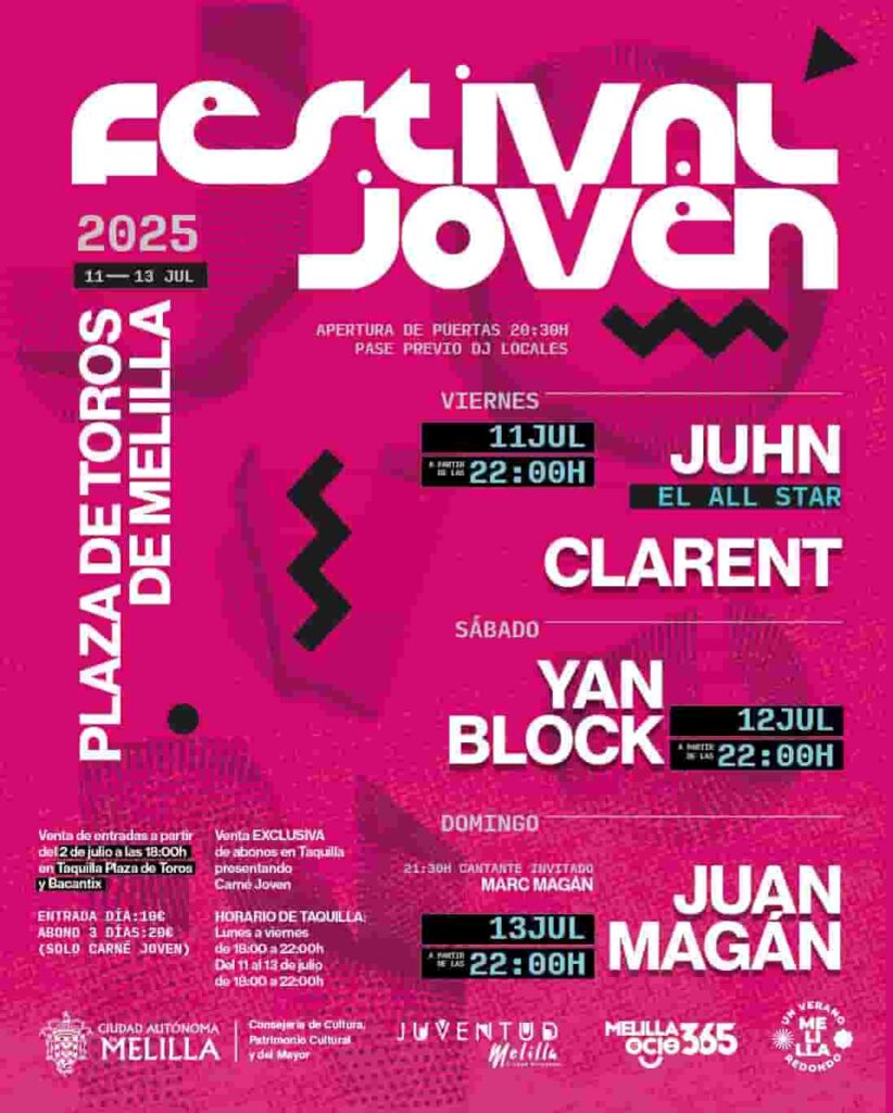 Las entradas se pudieron adquirir en la plataforma Bacantix, con precios desde 10 € para mayores con carné joven y paquetes de 3 días por 20 €. La actuación de Clarent destacó por su conexión con el público joven y la intensidad de sus temas urbanos, mientras los otros artistas del festival aportaban diversidad al cartel.