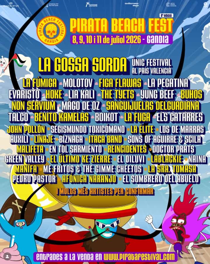 El Pirata Beach Festival es uno de los festivales más representativos de la música alternativa, rock, punk y mestizaje en España, y en 2026 regresa con una nueva edición que promete volver a convertir Gandia en el epicentro de la música rebelde del verano.